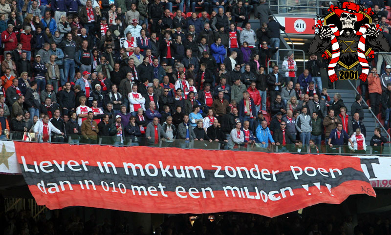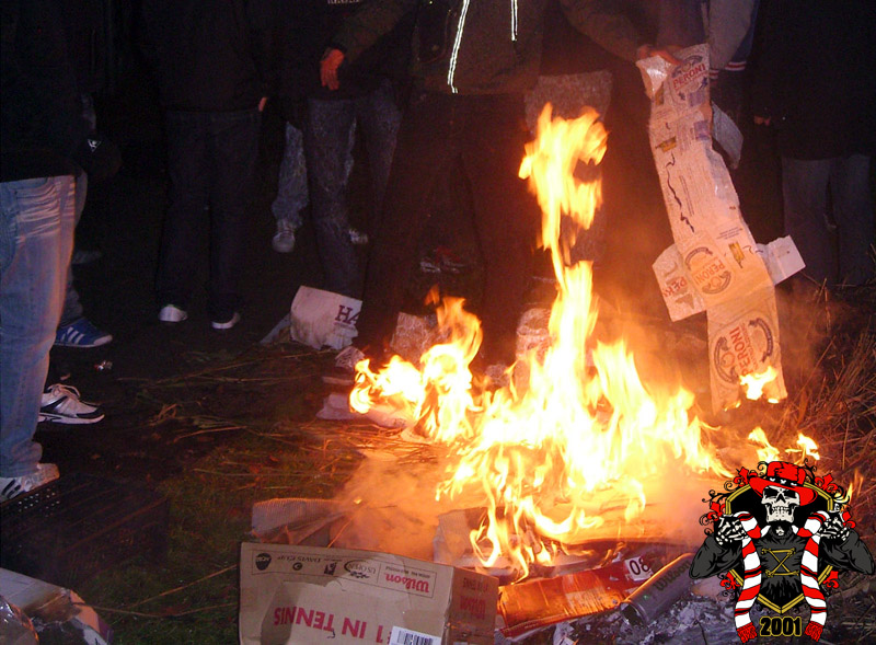 Jaarlijks vinden er rondom de Klassieker vaste rituelen plaats: bezoek aan de laatste training en de nacht ‘voor’. Dit jaar is op aangeven van Frank de Boer de laatste training besloten afgewerkt, dus dat ritueel ging niet door. Vroeg in de avond werd er door een groep bij het honk verzameld, van alle kanten wordt er drank en eten aangereikt. Aangezien de tempraturen ’s nachts weer tegen het vriespunt liggen wordt er een vuurtje opgestookt. De smeris komt ook nog even kijken, 8 busjes sterk. Als gauw zagen ze dat het om een groep Ajax ging, in tegenstelling tot hun eerdere gedachte naar een groep van de andere club.