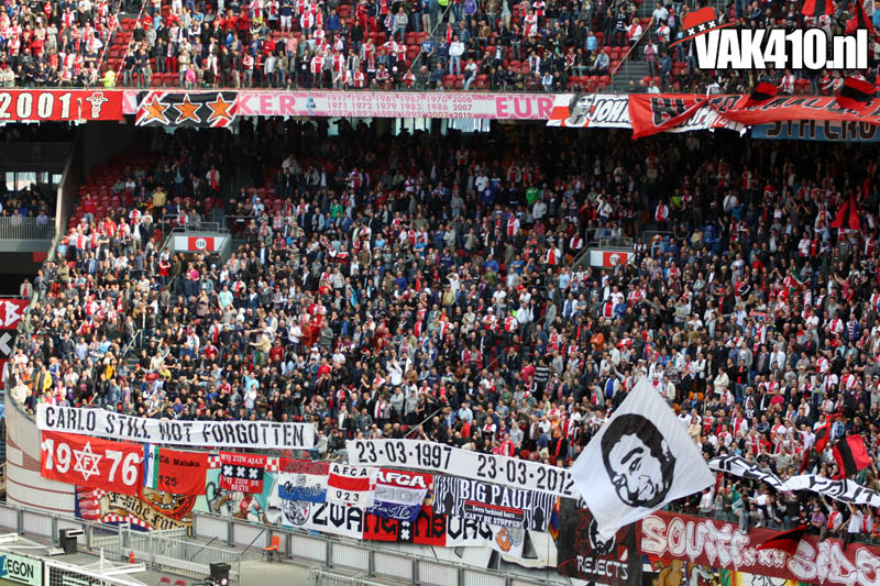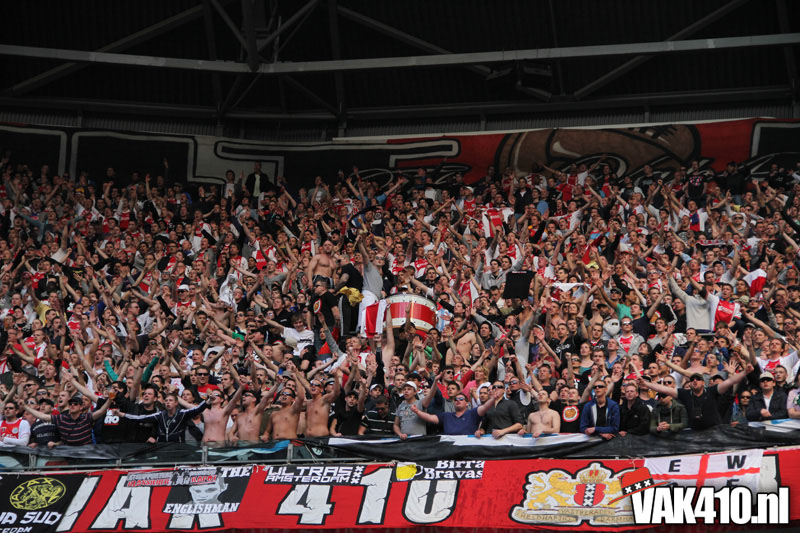 De magie van het doek werd overgebracht naar het veld en de Amsterdamse Zuid tribune. De Mokumse leeuw kwam in een ieder naar boven. De tribunes klokte, het stadion was 1. Er kon op de tribune en het veld dan ook niet meer verloren worden.