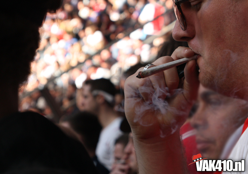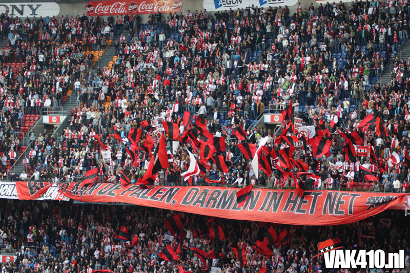 Temeer de tegenstander, geen tegenstander was. Het uitvak was voor deze topper niet uitverkocht. PSV wilde slechts 1.200 kaarten afnemen uit respect naar Ajax omdat zij slechts 1.200 man kunnen meenemen. En dan hebben we het nog niet eens over de Eindhovense stewards die er zorg voor moeten dragen dat het megadoek wel goed over de koppies gaat. Nee, dan win je het niet in Amsterdam...