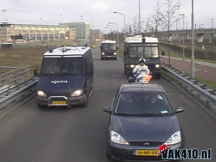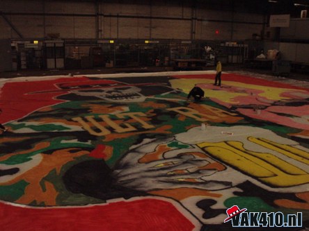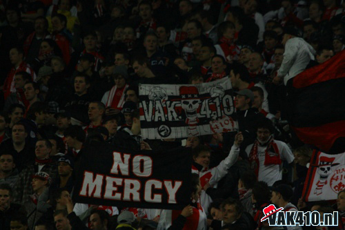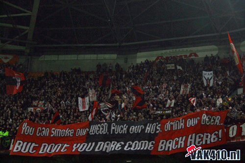 Bij opkomst van de spelers ging er weer een gigantisch doek over de hoofden. De VAK410 skull, vergezeld door de drie belangrijkste genotsmiddelen van Amsterdam. ‘You can smoke our weed, fuck our Ho's, drink our beer... but don't you dare come back here!' Een bericht gericht aan de supporters van l'OM. Gedurende de rest van de wedstrijd werden de Marseillais nog herinnerd aan de gebeurtenissen rondom Rue Negresko, een week eerder. Zij zullen het treffen met Ajax voorlopig niet vergeten.
