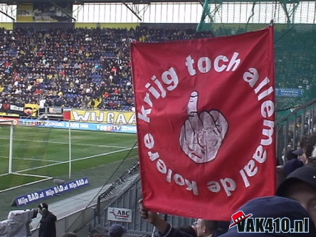 Nog even een huishoudelijk mededeling: laat je vuurwerk aub thuis. De veiligheid van onze jongens staat voorop. Niet alleen krijgt Ajax dikke boetes van de UEFA, ook schades aan stoeltjes en de beton coating zijn voor Ajax een doorn in het oog. Houdt hier aub rekening mee!