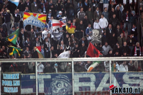's Middags was het al druk blauw in de stad. Donkerblauw door de politie, lichtblauw door de Marseillais. Na het tikkertje spelen in de stad, trok men richting stadion. VAK410 stond bommetje vol, de vlaggen en bandieri's waren weer terug. Ook het podium en de geluidsinstallatie was weer aanwezig. Oude vertrouwde sferen, tijdens de warming-up werd al begonnen met de zang.