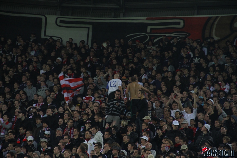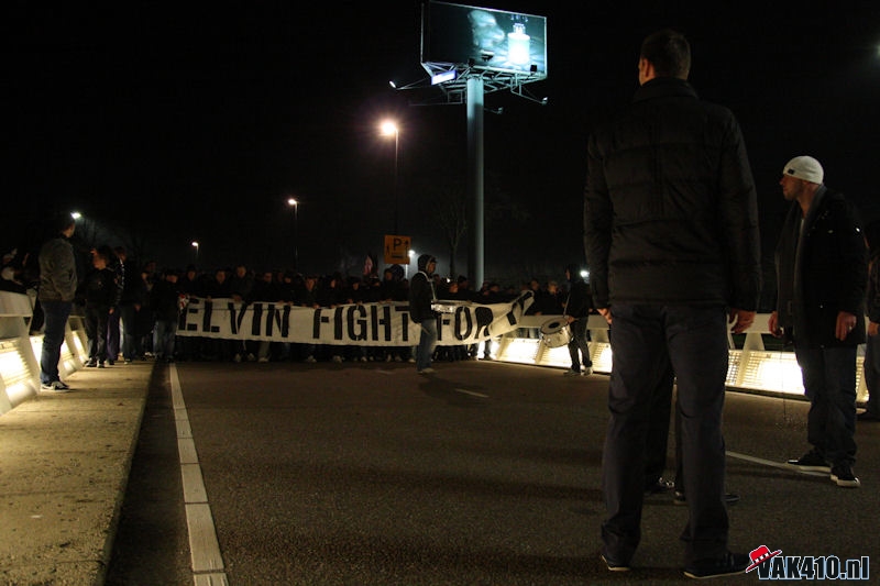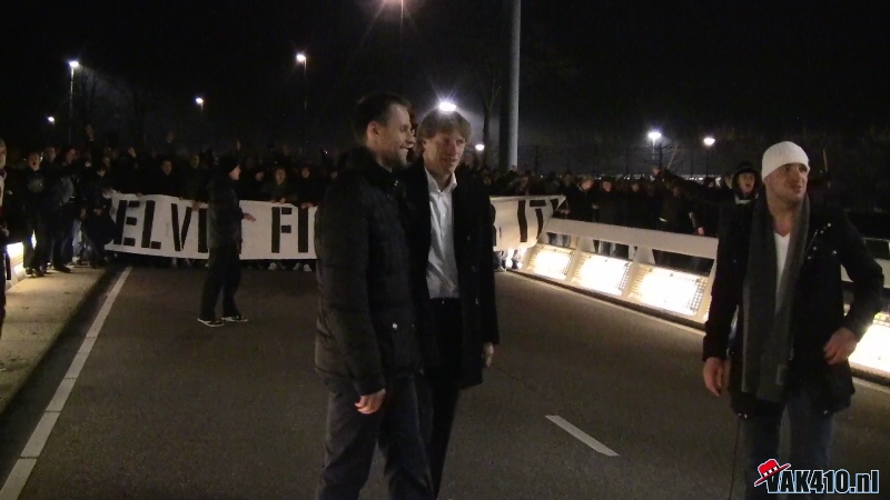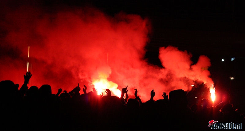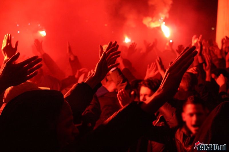 Zaterdag. Voor de wedstrijd werd om 19.00 uur verzameld bij het supportershome voor een korte corteo, welke ditmaal wel op een normale wijze doorgang kon vinden. Honderden supporters verzamelden zich op het grasveld, met een fakkeltje en een biertje. Waar Andre Ooijer en Rik van den Boog eerst achter de bar van honk verschenen, liepen zij vervolgens voorop mee in de corteo. Ook Andy van der Meijde sloot zich aan. AFCA had eerder deze week een interview met hem, waarin hij zijn oprechte liefde voor Ajax liet optekenen. Mede getuigen zijn nieuwe tatoeage van het enige echte Ajax logo.