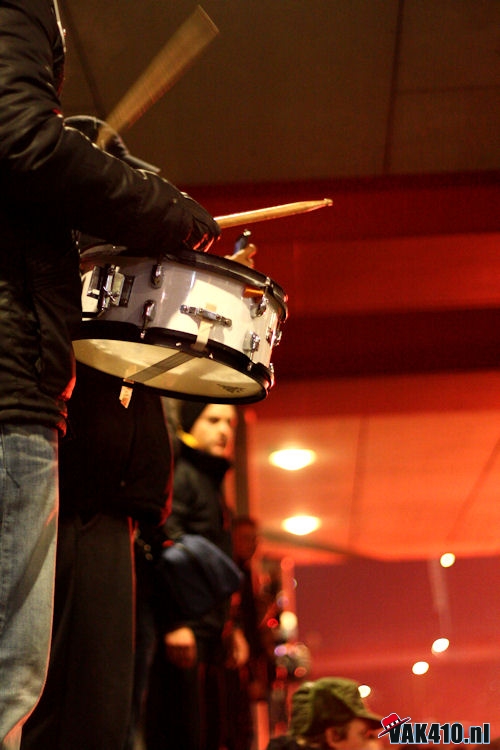 Vrijdag werd op de Toekomst de laatste training voor de wedstrijd achter ‘gesloten' deuren afwerkt. Een groepje VAK410 klom over de deur en hing een aantal spandoeken op en zong de spelers kort toe. Waarna de groep rustig het trainingscomplex verliet. Na de training kwamen de spelers en trainer nog even kort naar de groep om te bedanken voor dit gebaar.