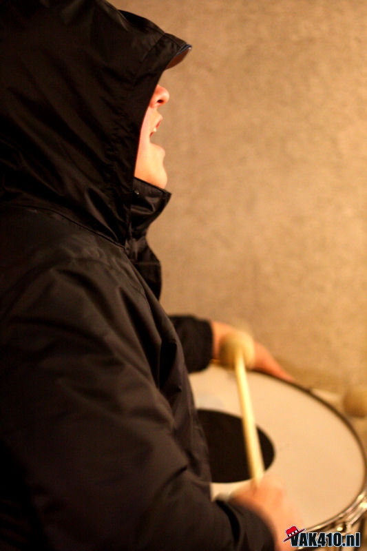 Nadat de eerste rookwolken de hemel hadden bereikt liep de groep, met voorop een spandoek voor Melvin, richting hoofdingang. Melvin is een jongen van onze groep die onlangs een zwaar ongeluk heeft gehad. Sterkte gap!!