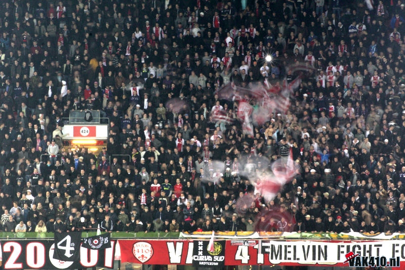 Op zondag 12 december speelt Ajax uit bij Vitesse. Wij roepen jullie op om massaal mee te reizen naar de Gelredome. Iedereen die mee wil helpen om het uitvak te verbeteren; dit is je kans om te laten zien hoe het moet. Voor Vitesse uit gaat de kaartverkoop meestal vrij langzaam, dit is onze kans om VAK410 te laten zien in het uitvak. Alles gaat mee! Kaarten kosten 33,05. Op dit moment is de kaartverkoop voor voorrangsuitkaarthouders en zaterdag 27 november om 10.00 kunnen ook de nationale uitkaarthouders hun kaart kopen.