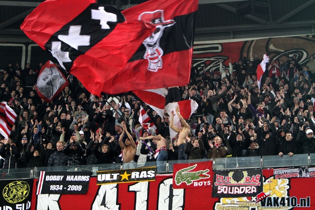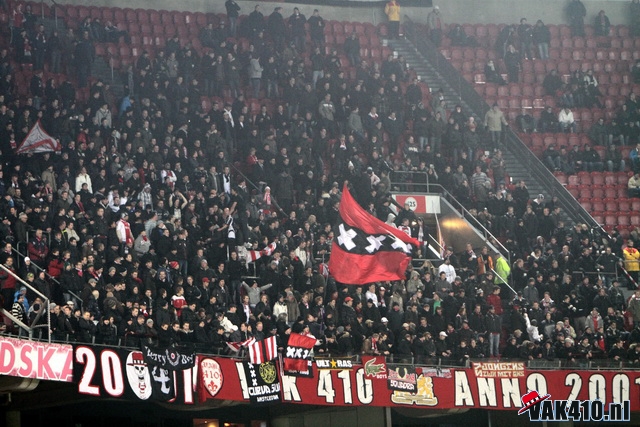VAK410 was, vergeleken met de rest van het stadion, nog aardig goed gevuld. Ook al staan we er met elf man, wij zullen ons altijd van ons laten horen. Er werd gevoetbald alsof de elf op het veld vandaag niet wilde winnen. Al was na het doelpunt duidelijk, dat één iemand daar misschien nog anders over dacht. Mido vierde zijn goal met een ere ronde door het stadion, alsof de drie punten al bijgeschreven waren. Zonde dat de overwinning dan weer zo simpel word weggegeven. Weer punten laten liggen in eigen huis. Waar is het elftal van vorig jaar, dat elke thuiswedstrijd met fier won? Hebben jullie vorig seizoen al het kruit verschoten?