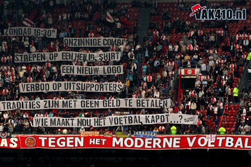 Daarnaast werd het nieuws bekend dat Ajax weer de ‘Adidas' strepen op het thuisshirt krijgt. Eerst werd gedacht aan een foute 1 april grap, niet dus. De strepen op de mouw leveren substantieel meer geld op. ‘Strepen? We zijn Madrid niet?' Weer wordt er gesleuteld aan een traditie. Ajax speelt met een wit shirt met daarop een verticale rode baan, al sinds 1911. Veranderingen, veranderingen en nog meer veranderingen. Voor geld. En nog meer geld. Geld wat nodig schijnt te zijn, om te kunnen aansluiten bij de top van Europa. Vergeten we wel dat notabene de Champions League werd gewonnen in een jaar dat Ajax niet eens de grootste begroting van Nederland had. ‘If I hadn't seen such riches, I could live with being poor.'