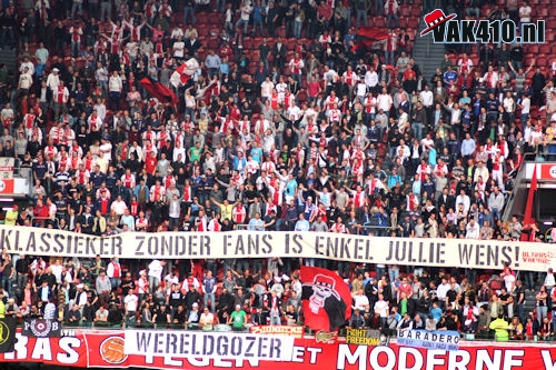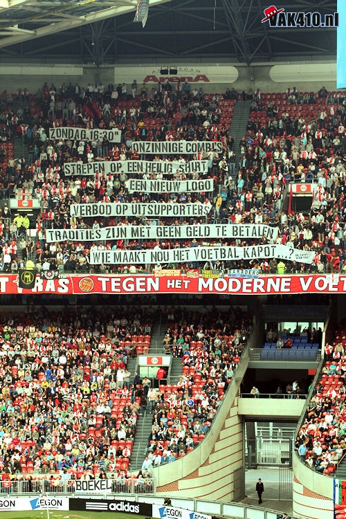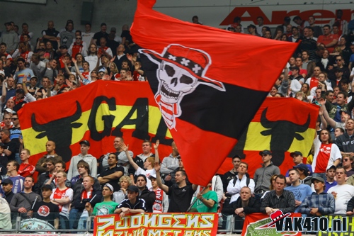 Langzaam stijgen de tempraturen weer in het land. Lekker in je t-shirtje naar het stadion, van te voren even een biertje drinken in het home. Een wedstrijd tegen Willem II, geen risico dus het honk kan gewoon open. Raar dat we daar eigenlijk al over na moeten denken. Het is zelfs zo erg dat ze die 5 meegreisde Willem II supporters op de hoofdtribune hebben geplaatst. Het complete uitvak was dus met Ajacieden gevuld. We trappen om 16.30 uur af, de nieuwste tijd die voor dit seizoen is verzonnen. Een groot aantal seizoenkaarthouders is thuis gebleven. De prachtige elementen van het weer en het almaar frivoler spelende Ajax wegen niet op tegen een combinatie van Willem II, half 5 en Eerste Paasdag. Wil Studio Sport voortaan een uurtje later beginnen met uitzenden? Reikhalzend kijken we uit naar de nieuwe tijd die volgend jaar komen gaat...