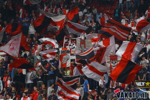 Bobby Haarms was weer eens in het stadion, op heel veel meer bezoeken kan het stadion helaas niet rekenen van hem. Voor VAK410 reden genoeg om ‘zijn' doek weer eens uit te rollen. Na de wedstrijd reed hij nog even een rondje om het honk en kwam wat 410'ers tegen. Bob over de actie: ‘PRACHTIG'.