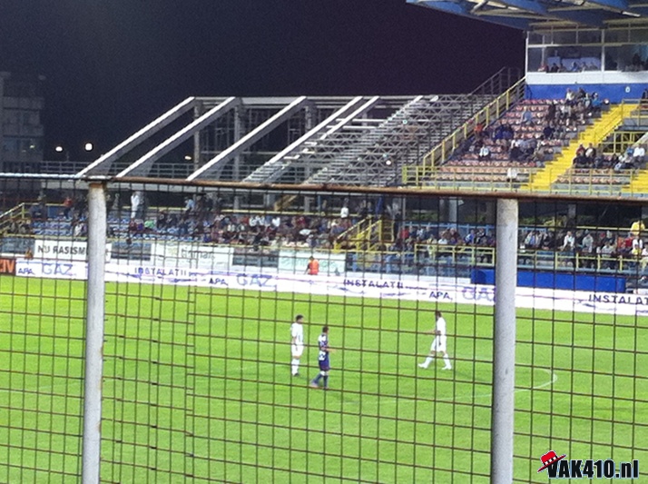 Na een vette hap gegeten te hebben, zochten we snel de trein richting Ploiesti. Na slechts drie kwartier kwamen we dan eindelijk aan. Na een kort taxiritje kwamen we dan aan bij het stadion van Astra Ploiesti. Een oud stadion, midden in een woonwijk, heerlijk!