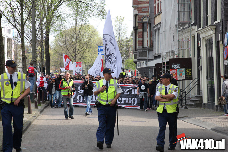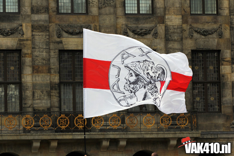 Via dit bericht wil de werkgroep iedereen bedanken die deze Ajax Marsch tot een succes heeft gemaakt. De bereidwilligheid van de gemeente en ordehandhavers om ons dit podium te geven, de jongens die het tekst- en megadoek hebben gemaakt, de fanshop die bijna kosteloos 76 voetballen heeft geschonken, de vele vrijwilligers die elk uur van hun vrije tijd erin hebben gestoken, de ordedienst die ervoor heeft gezorgd dat de hele demonstratie zonder ook maar één wanklank is verlopen (!), de verbaasde tramgangers die opeens met ‘onbepaalde vertraging’ te maken kregen en natuurlijk alle Ajacieden die deze Marsch tot een succes hebben gemaakt. Eén iemand willen we in het bijzonder bedanken en dat is Theo, onze (stiekem toch niet) gepensioneerde steward die keer op keer laat zien een echte te zijn.